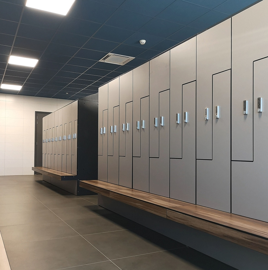 In vaste sportaccommodaties zijn lockers onderdeel van de totale beleving. Ze moeten functioneel zijn maar ook passen binnen de uitstraling van de accommodatie. Duurzame uitvoeringen in hpl of hout zijn populair vanwege hun luxe en onderhoudsvrije karakter. Steeds vaker worden elektronische offline sloten zoals digilock toegepast waarmee gebruikers hun locker eenvoudig openen met een code of rfid pas.