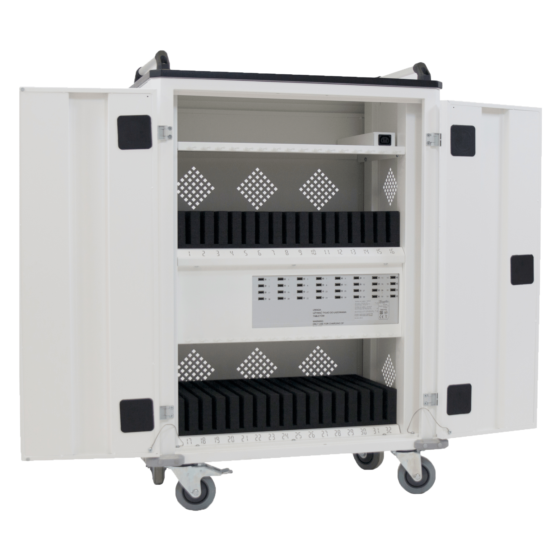 De constructie bestaat uit hoogwaardig staal dat intensief dagelijks gebruik moeiteloos aankan. Door de overzichtelijke vakverdeling worden laptops beschermd tegen schade, diefstal en onbevoegde toegang.