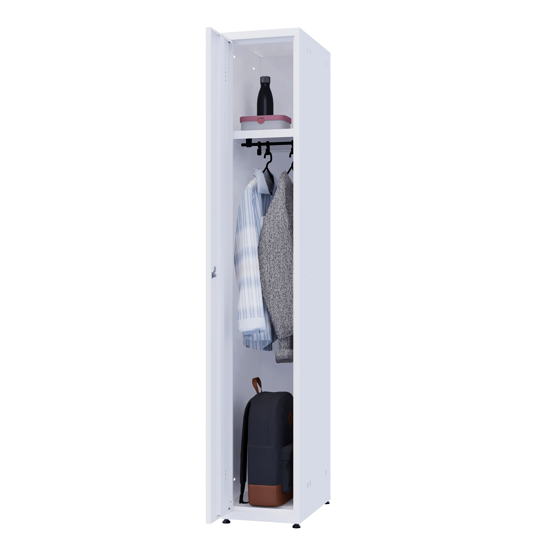 De basis van elke locker bestaat uit gegalvaniseerd staal dat optimale bescherming biedt tegen roest en slijtage. Hierdoor blijven de kasten jarenlang in uitstekende staat, zelfs in vochtige of drukbezochte ruimtes. Het gladde staaloppervlak maakt de lockers eenvoudig te reinigen en zorgt voor een blijvend nette uitstraling.