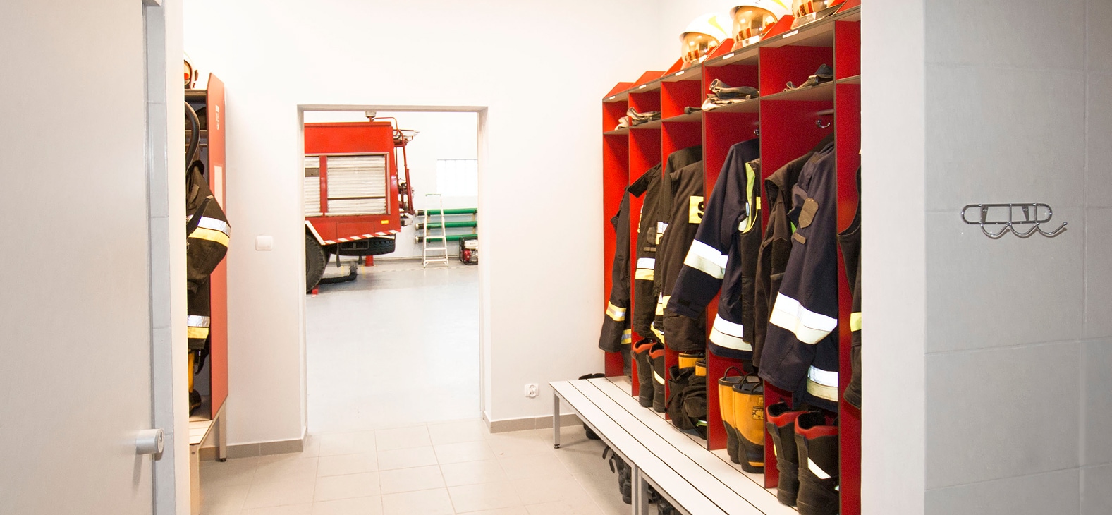 Voor brandweerposten worden vaak open lockers toegepast. Deze uitvoering zorgt ervoor dat natte kleding goed kan drogen en direct toegankelijk blijft bij een uitruk.