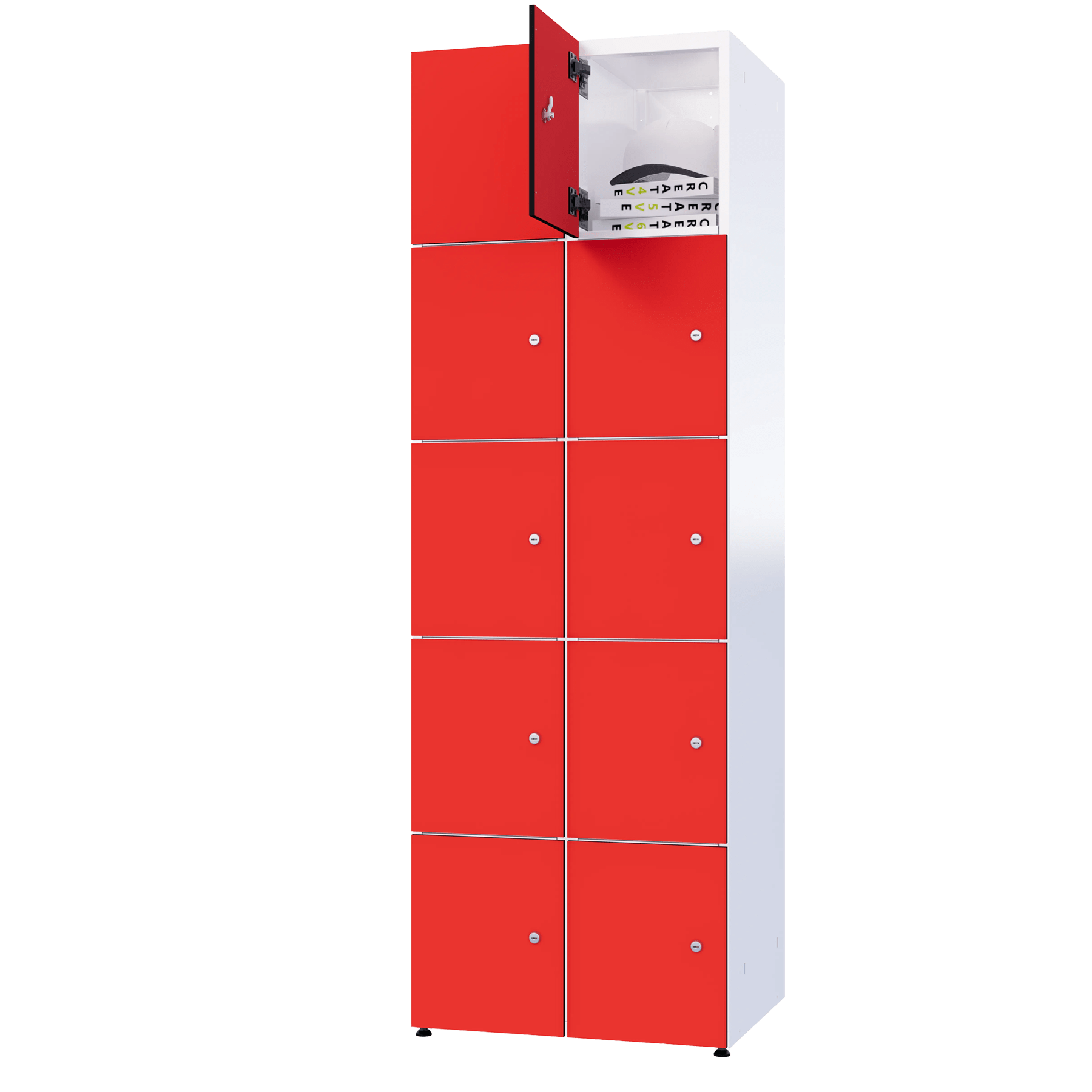 De lockers worden vervaardigd uit gegalvaniseerd staal, wat zorgt voor een stevige, roestbestendige en onderhoudsvriendelijke basis. Dit materiaal is ideaal voor intensief dagelijks gebruik en kan worden gecombineerd met open of gesloten compartimenten, afhankelijk van de situatie of voorkeur.