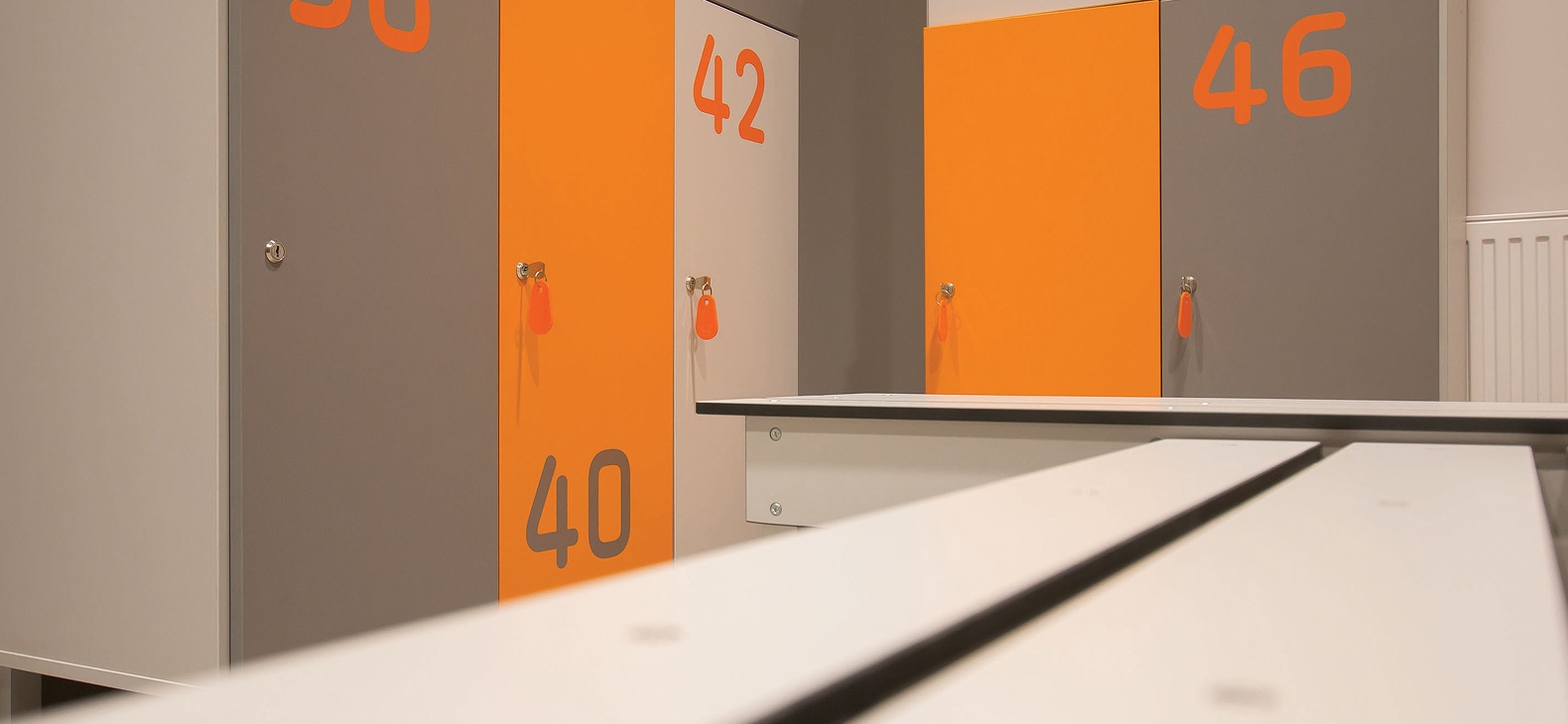 De gekozen tinten sluiten naadloos op elkaar aan en worden versterkt door bijpassende kleurnummering op de deuren. Dit zorgt voor een rustig, vriendelijk en representatief geheel dat sporters direct een welkom gevoel geeft. De Scandinavisch geïnspireerde eenvoud van de kasten draagt bij aan de lichte en moderne sfeer in de ruimte.