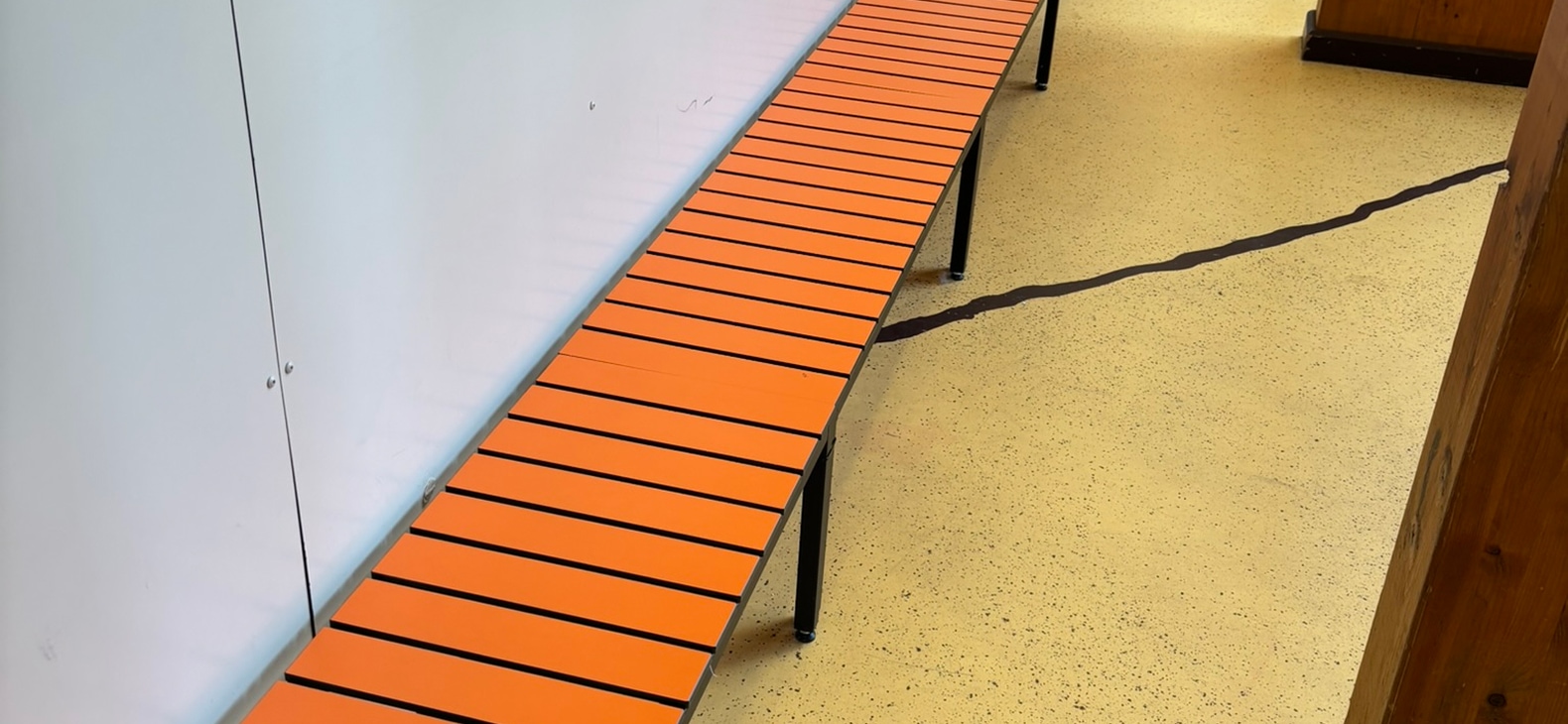 De lockers zijn gecombineerd met solide zitbanken in diverse zones van de school. Deze banken zorgen voor extra comfort en dragen bij aan een overzichtelijke en efficiënte routing in gangen en kleedruimtes. De bankconstructies zijn uitgevoerd met stevige stalen frames en zittingen die passen bij de gekozen lockerafwerking, zodat het geheel één samenhangend ontwerp vormt.