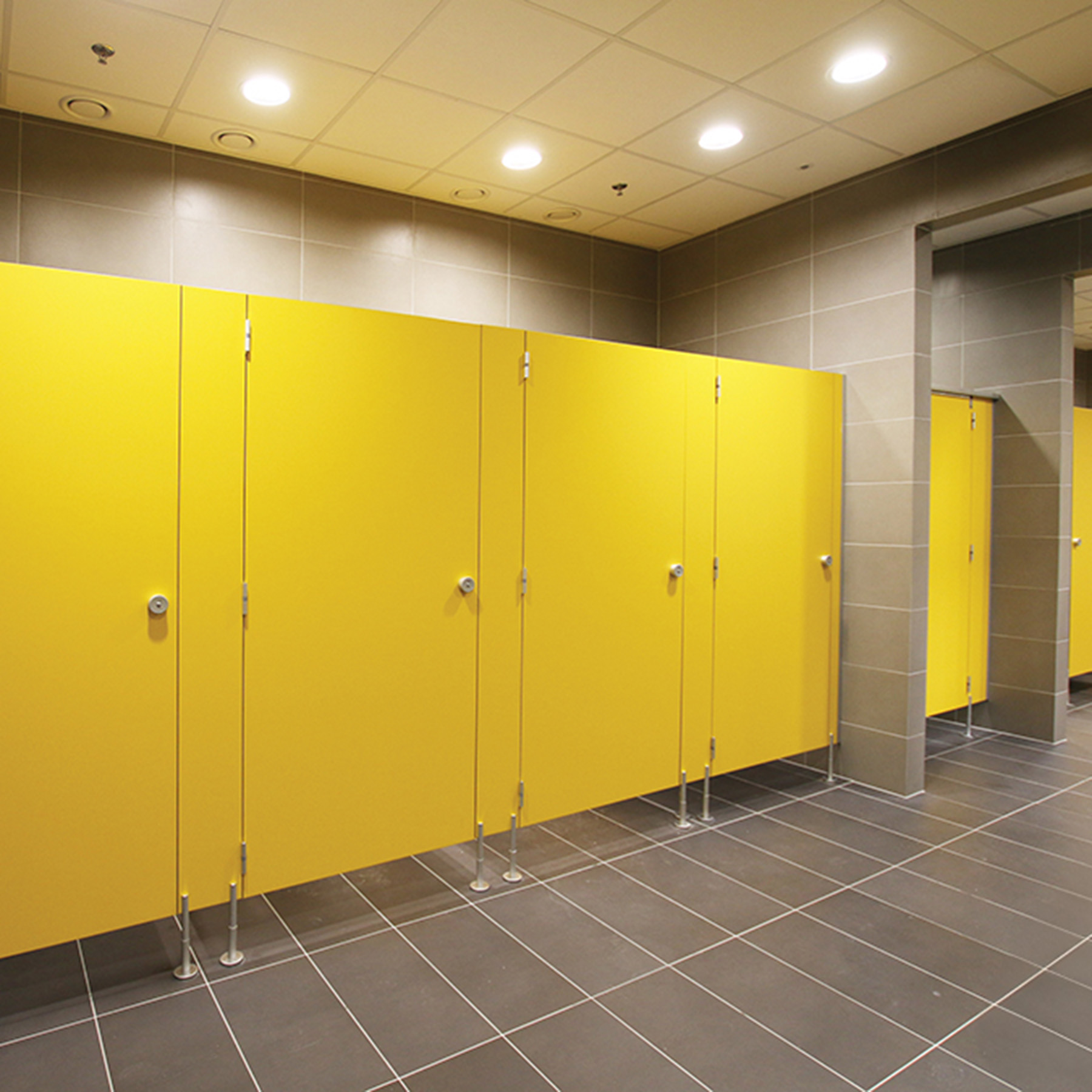 De toiletwanden en cubicles van De LockerSpecialist zijn gemaakt volgens de hoogste kwaliteitsnormen. Ze bestaan uit Compact HPL van tien of twaalf millimeter dik, gemonteerd in stijve vochtbestendige aluminium profielen. Dit zorgt voor een duurzame solide en hygiënische constructie die perfect geschikt is voor drukbezochte sanitaire ruimtes zoals scholen kantoren sportcomplexen ziekenhuizen en openbare gebouwen.